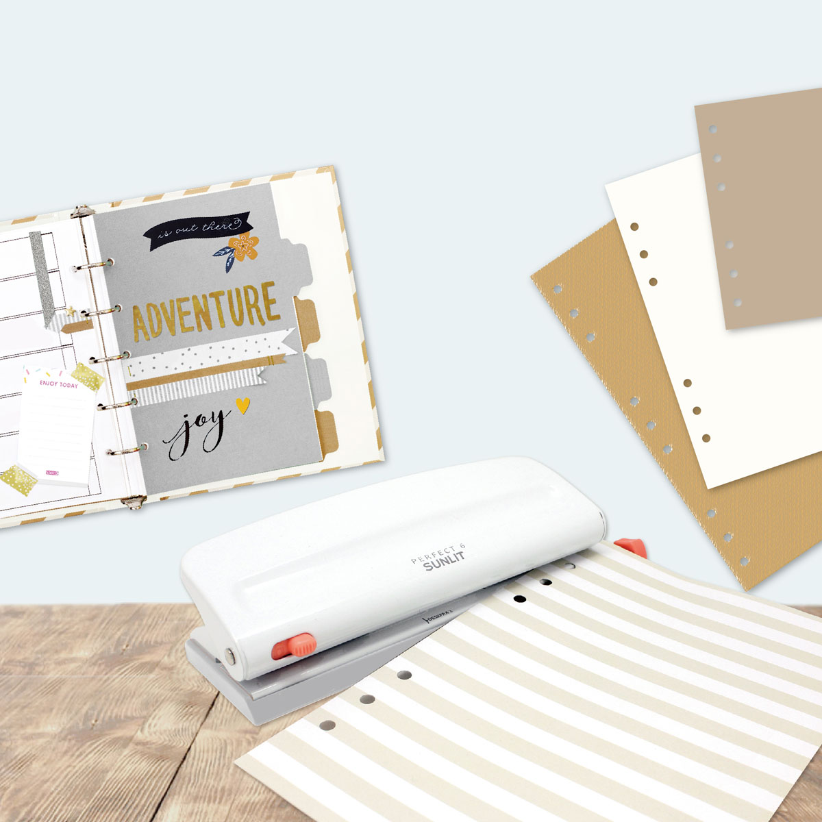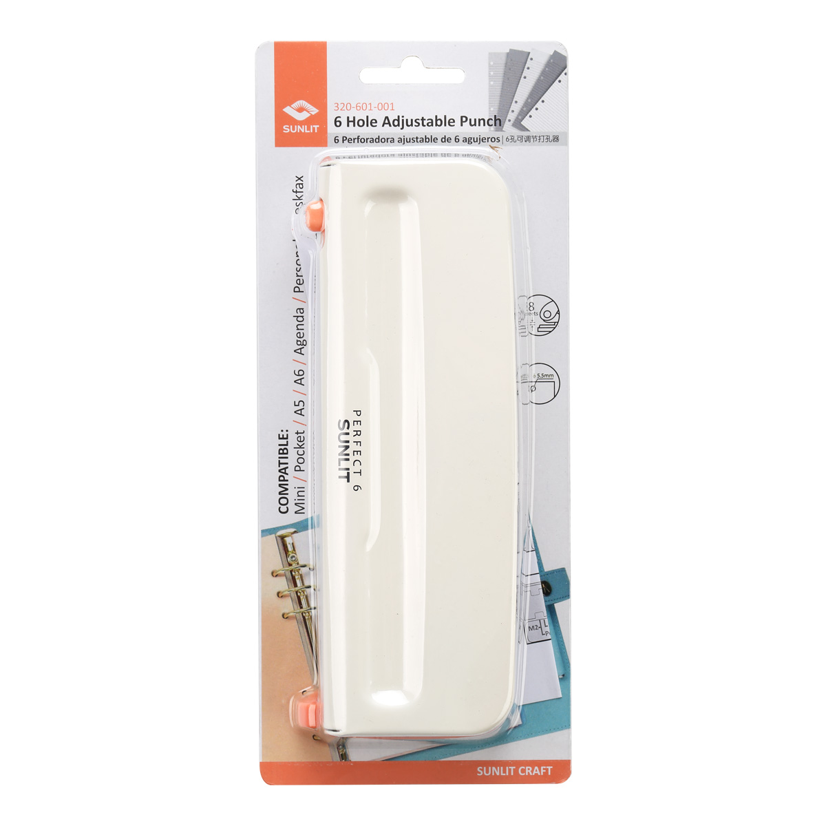 • Adjustable 6 hole punch.